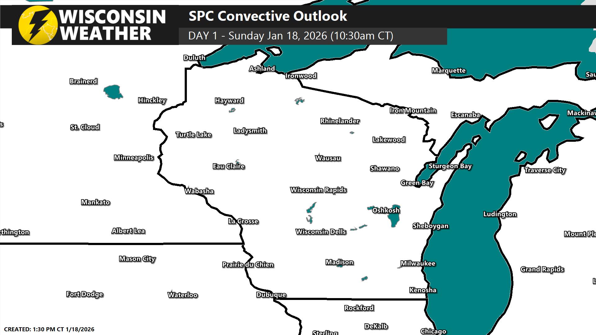 Maps created by the SPC (Storm Prediction Center) visualized on wisconsinwx.com.